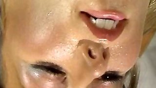 Big boobed sporty blonde cheerleader gets her bum smashed with cumshot on stomac