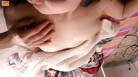 Wet after shower Big natural saggy tits ovals hard nipples