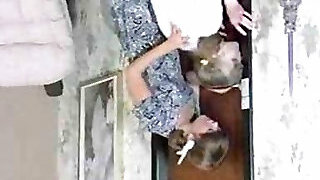 Wondrous German girl with blonde hair having fun with a older dude